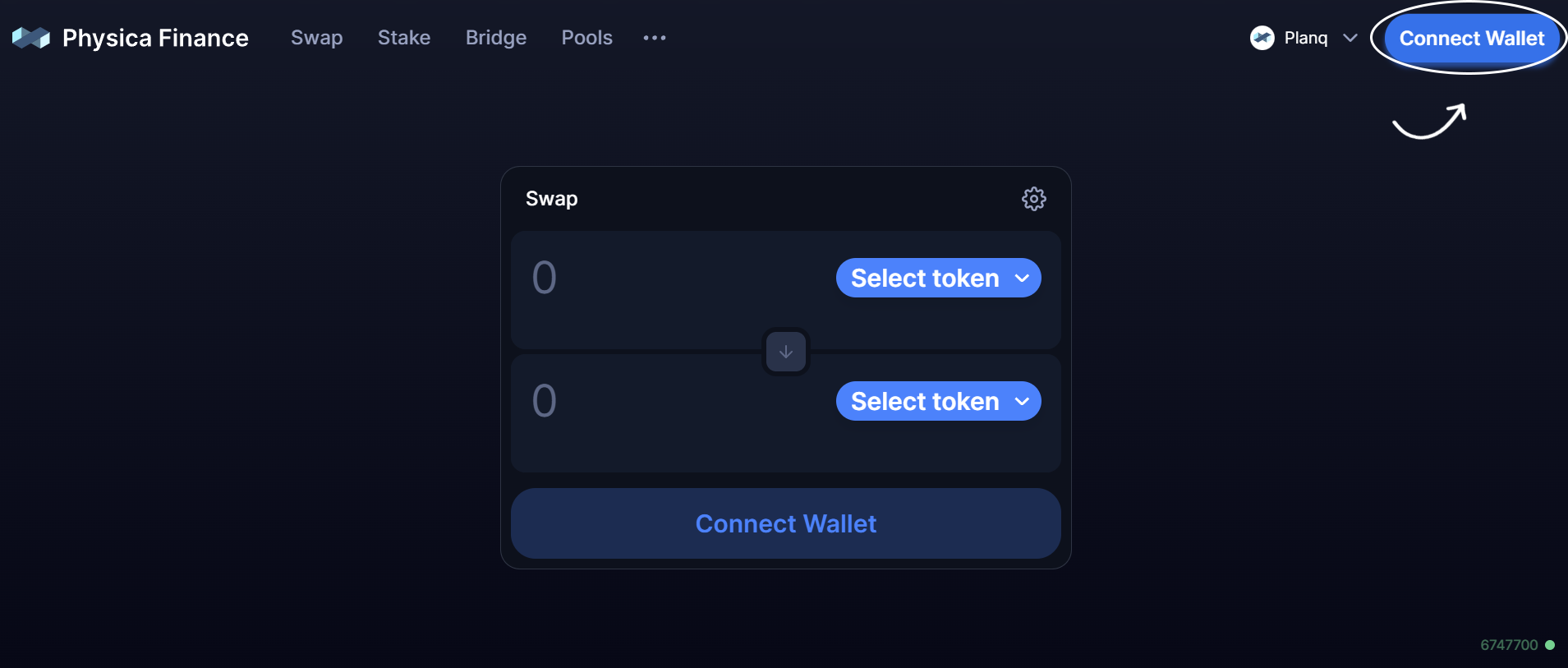 * Go to the [Physica Swap](https://physica.finance/) website