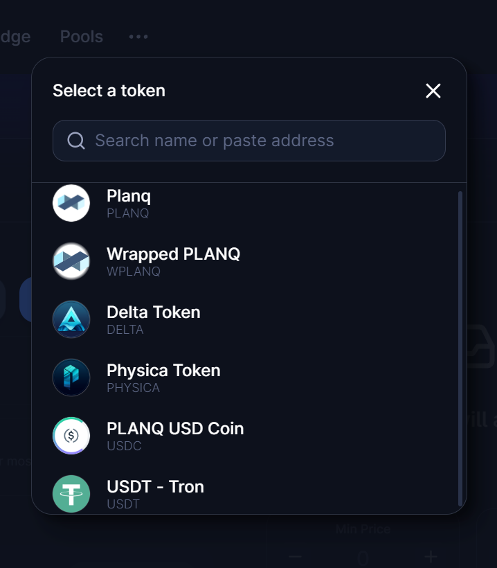 <figure><img src="https://656919838-files.gitbook.io/~/files/v0/b/gitbook-x-prod.appspot.com/o/spaces%2FrkgHavYIJrUCEEqHAT5E%2Fuploads%2F9cNz4P2hD2EU037jCb1p%2FSelect%20Token.png?alt=media&#x26;token=e718a452-8ac2-46ea-88eb-53e5a92dbc35" alt=""><figcaption></figcaption></figure>